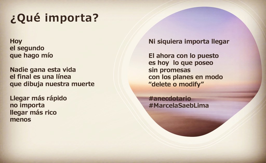 ¿Qué importa? por artesaníadelapoesía #anecdotario 15 octubre, 2020 Comparte esto:TweetMe gusta Cargando...